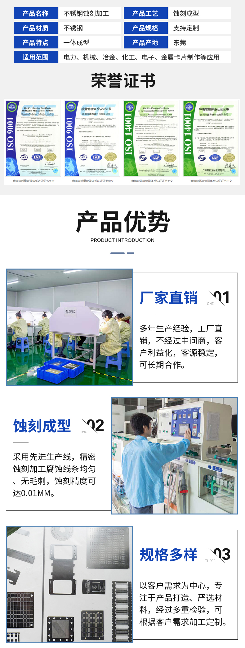 工序 | 购料-制图-蚀刻-电镀-质检-包装 | ||