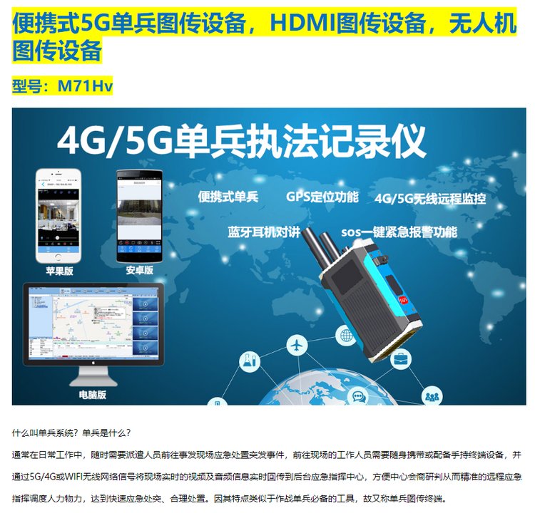 5G海昱视M71Hv无人机HDMI视频直播编码器人员单兵视频图像传输
