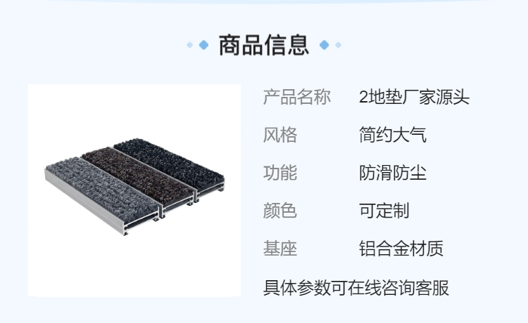 特点 | 承重能力好/凹槽安装/表面材料可为地毯或橡胶/可卷起,方便清洁铺垫槽/垂直或斜角框架可用 | ||