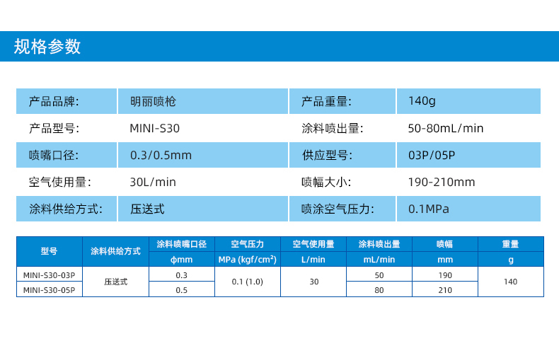 适用范围 | 水性、油性微量涂料,小型玩具、防指纹油等喷涂 | ||
