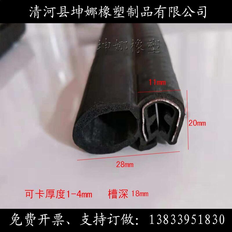 可分为实芯制品(圆形、方形、扁平形断面形状)、中空制品及金属橡胶复合制品等类型。其中,金属橡胶复合密封条占60%以上。对于橡胶密封条来说断面设计至关重要。首先是密封唇边形状、尺寸设计,两侧密封唇边应以相同的、大小适当的力从车窗玻璃的两侧接触玻璃。唇边长度、薄厚应适当,过厚、过长会使玻璃升降阻力偏大,过薄、过短又会导致玻璃得不到良好的引导和密封,产生振动、噪音、漏雨现象;其次是断面底部形状、尺寸设计,车窗钢槽断面上有凸起,其作用是为了装配导槽,因此,导槽断面底部应设计出相应结构,既易于装入,又能利用密封条自身的弹性附着在钢导槽内,防止其脱出;最后是外搭边的形状、尺寸,为了改善外观,导槽外饰面应与车身紧密贴合。