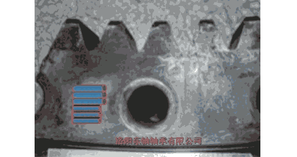 变桨轴承的结构形式通常有单排四点接触球轴承和双排同径四点接触球轴承两类,驱动形式有无齿、内齿、外齿三类。本文获得的样品为风电场提供的1.5MW风力发电机组的一开裂变桨轴承,其结构为内齿驱动的双排同径四点接触球轴承。