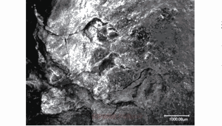 轴承内圈、外圈滚道表面形貌分别如图5、图6所示,在滚道表面可观察到大量的点蚀坑,同时表面还有微裂纹形成。