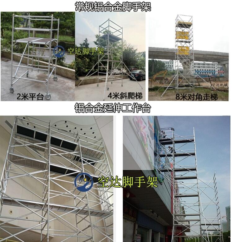 移动铝合金脚手架无论在安全还是性能都远远优于传统钢制脚手架,因此受到大量施工单位的认可。在建筑行业中,不论大型楼宇的建设还是小型物业路灯的维修随处都可以见到其身影。