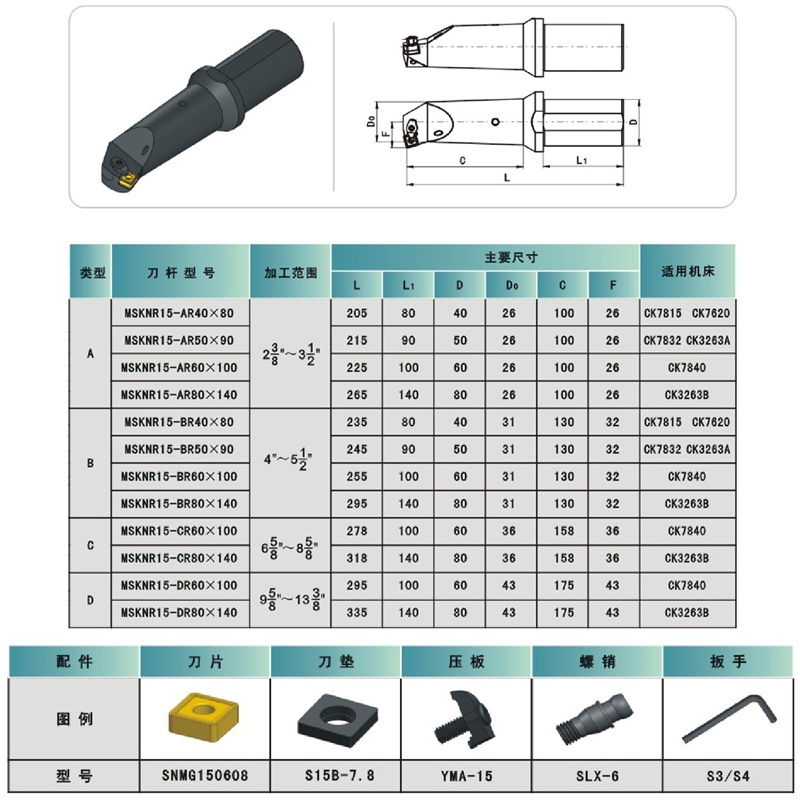 石油管螺纹疏刀刀具镗孔刀杆MSKNR15-AR40×80