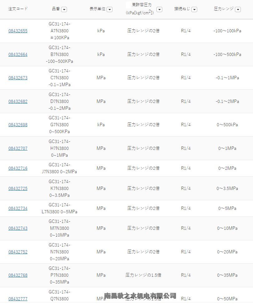 日本NKS长野计器圧力计GC31-174-A7N3800 ±100KPa