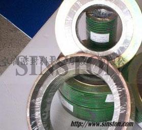 金属缠绕垫片采用 SUS304、SUS316(“V”形或“W”形) 金属带及其它合金材料与石墨、石棉、聚四氟乙烯、无石棉等软性材料相互交替重叠螺旋缠绕而成,在开始及末端用点焊方式将金属带固定。金属缠绕垫片为半金属密合垫中回弹性 的垫片,金属缠绕垫片结构密度可依据不同的锁紧力要求来制作,并利用内外钢环来控制其 压紧度,缠绕垫片接触的法兰密封面的表面精度要求不高。金属缠绕垫片特别适用于负荷不均匀、接合力易松弛,温度与压力周期性变化、有冲击或震动的场合。缠绕垫片是阀门、泵、换热器、塔、人孔、手孔等法兰连接处理想的静密封原件。