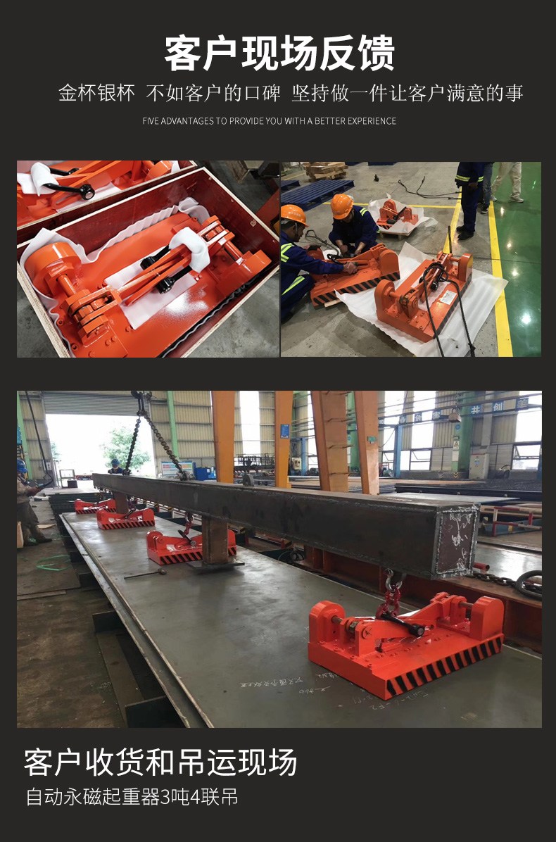 XYLC系列全自动永磁起重器无需电源即可自动循环完成吸持和释放工件动作,操作简单方便,使用安全可靠,广泛应用于机械制造业、造船厂等。既可单台使用,又可以多台组合吸运大型长条钢板,钢胚或其他型钢,使用寿命长,是一种节约能源的理想吊装设备