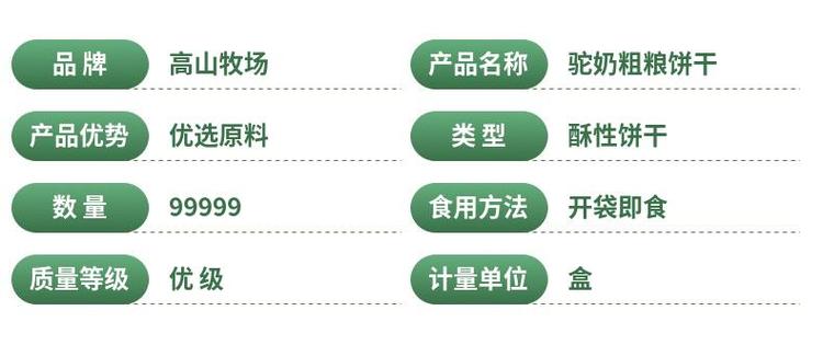 产品名称 | 驼奶粗粮饼干 | ||