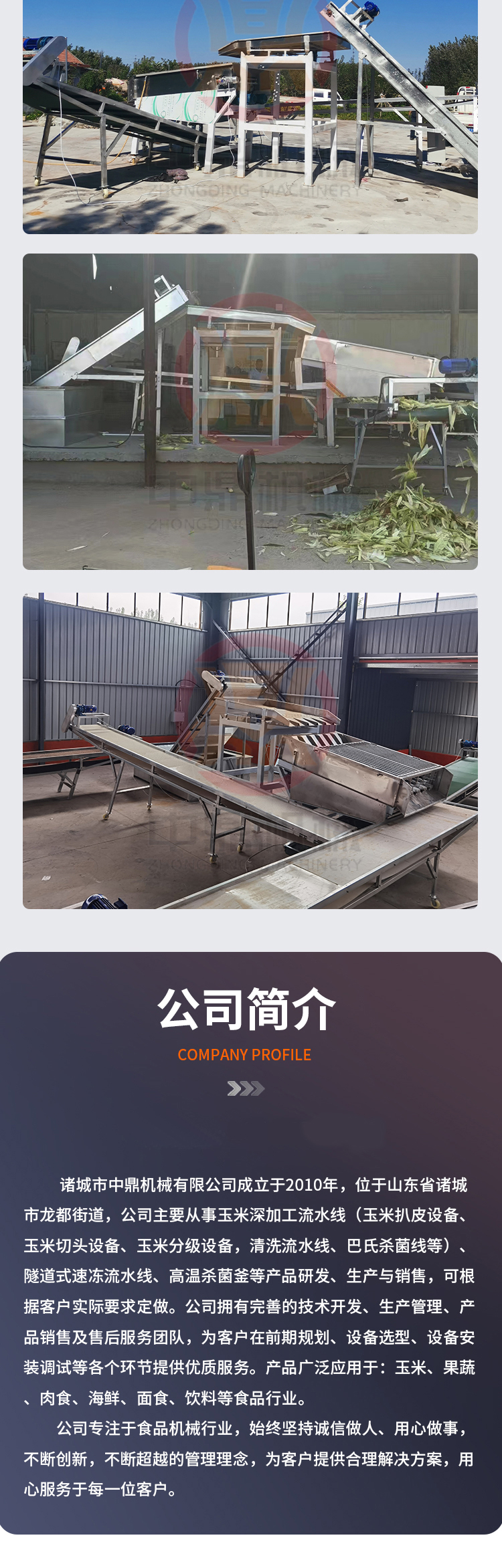 鲜苞米去皮设备玉米深加工成套流水线扒皮机中鼎