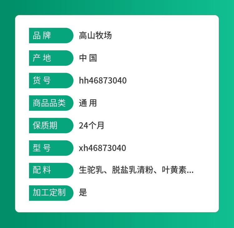 配料生驼乳、脱盐乳清粉、叶黄素、益生菌