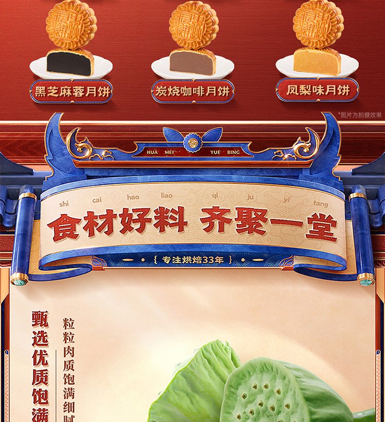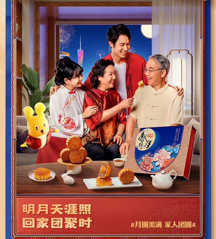 华美月饼740G感恩月吉祥福贵B款广式多口味团购中秋节送礼特产
