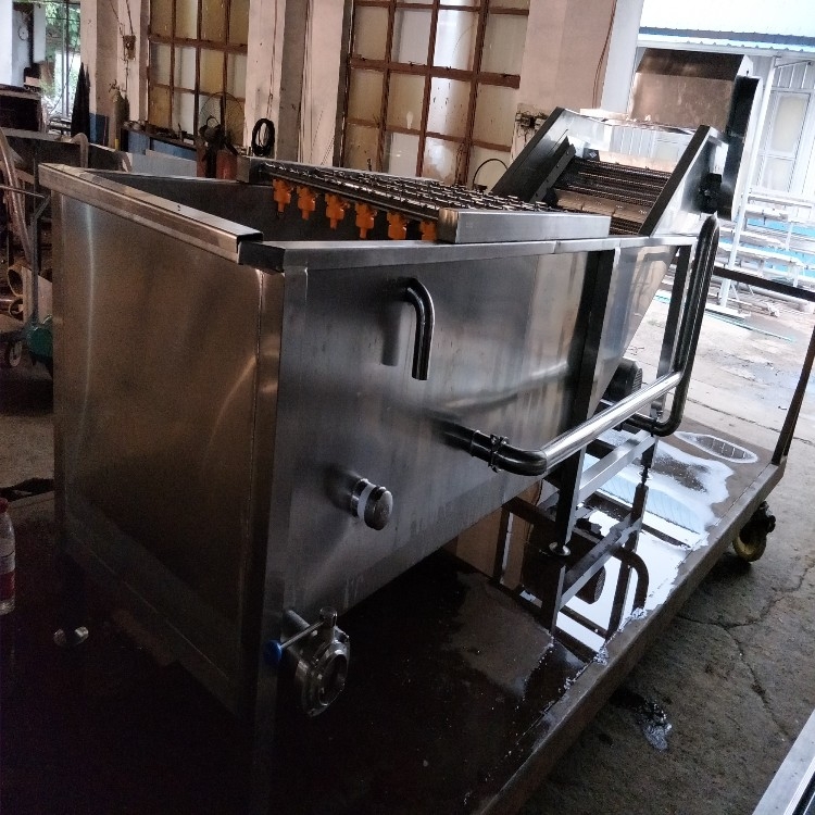 气泡清洗机是大枣,蔬菜,水产生产线中的重要产品,主要用于大枣,蔬菜,水产的清洗。气泡清洗机的原理主要是利用箱体前部分设备箱体中注适量的水,经过加热管将水温加热,原料在经过箱体时,会与气泡机和水的结合作用下做翻滚状态,并随网带不断向前推进,在出水面时,高端设有喷淋头,高压冲洗。