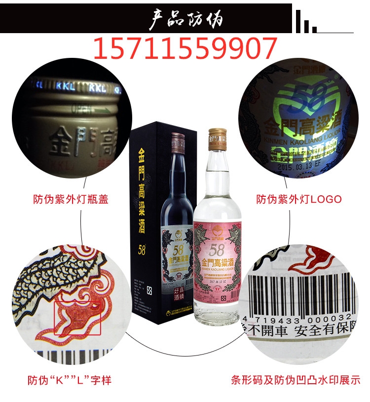 台湾58度金门高粱级红标白金龙600毫升750毫升价格原装进口