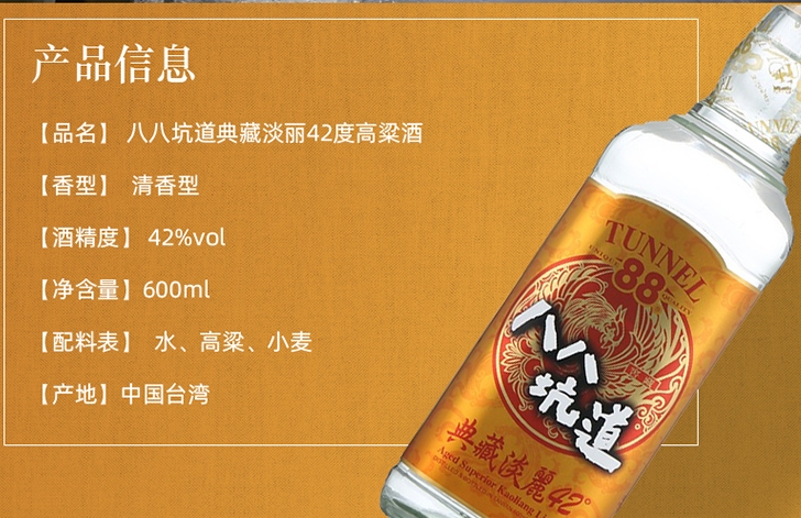 八八坑道42度纸盒典藏淡丽高粱酒台湾金门高粱酒马祖八八坑道淡丽42度清香型白酒42度台湾八八坑道纸装典藏淡丽高粱酒清香型白酒金黄色0.6公升台湾马祖八八坑道42°淡丽高粱酒白酒
