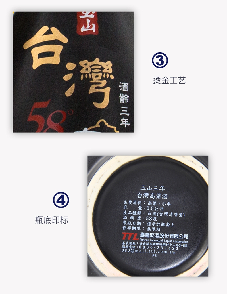 TTL台湾玉山高粱酒 玉山三年高粱黑瓷瓶58度500ml批发
