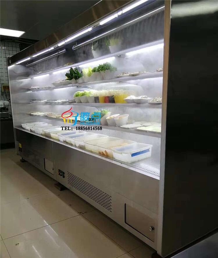 2、顶部带有喷雾系统功能,自上而下的喷出雾气,使整个徽点喷雾风幕柜的菜品具有良好的展示效果,菜品显得娇艳欲滴,更加持久保持新鲜。
