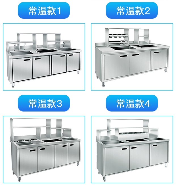 首先我们需要一个奶茶操作台,制作奶茶必备设备,也是我们最主要的工作区域,奶茶操作台的款式真可谓多种多样,但是我们除了选择一个自己可以用的习惯的样式,主要还是要看奶茶操作台的材质和配置,奶茶操作台的材质有201和304两种钢材,304好一些,一般餐饮类行业都用304材质的;其次注意操作台的钢板是不是够结实,耐不耐用,这关系到我们以后长期的使用,因为操作台上会摆放许多其他的小件设备,所以为了防止时间长对操作台造成损坏,zui好选择钢板加厚的。