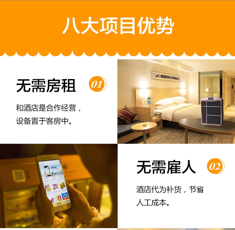 5、免费为酒店客房安装智能售货机,'互赢'分成模式提高酒店效益。