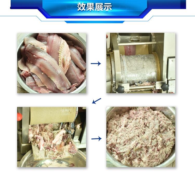 今天小编给大家介绍一下做鱼丸鱼肉里面的鱼刺和鱼骨分离开来的机器,这种机器的学名叫做鱼肉采取机,我们来看一下赣云牌鱼刺分离机,鱼刺分离机分全不锈钢款和普通款,全不锈钢款整机采用不锈钢制造,普通款的采肉机机器支架采用铸铁制造,机器外壳和采肉滚筒采用不锈钢制造。全不锈钢鱼肉采肉机有哪些优势呢,全不锈钢款鱼刺鱼骨分离机整机采用不锈钢制造,有极高的防腐放防锈的作用,传动配件之间不会受锈蚀影响,传动部位阻力低,使用寿命长,而且机器保养非常方便,从机器的使用寿命来说,全不锈钢的鱼肉采肉机使用寿命长,保养好就算用个几年机器还是和新的一样好用。从食品卫生安全方面来讲,整机采用304不锈钢可以达到食品卫生安全。
