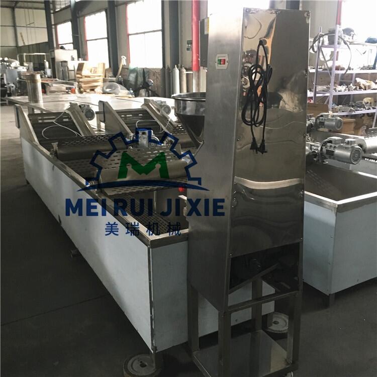 全自动大型丸子生产线 撒尿牛丸丸子设备 肉丸生产设备适用于肉丸加工厂生产使用,可以生产猪肉丸,鱼丸,鸡肉丸,牛肉丸等圆形的实心丸子。整套肉丸加工生产流水线设备自动化强,产量高,设备质量设计美观。肉丸加工生产流水线主要由冻肉刨肉机,冻肉绞肉机,液压升降式打浆机,单刀高速成型机,熟化冷却风干流水线组合而成。