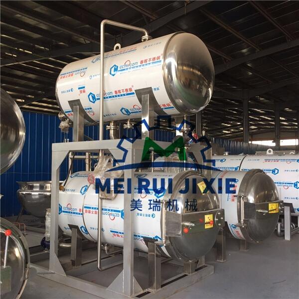 高温杀菌锅是一种杀菌锅炉,具有快门式压力容器安全联锁装置,独立电器仪表控制系统,自动进行恒温、保温、定时,采用不锈钢材料制作,具有外形美观、卫生、安全、耐用等特点。根据其结构可分为单锅、双层、双锅并联、多锅并联等。如果产能较大机建议选用双锅并联或多锅并联,不仅产能高,还可以节省时间和生产成本。多杀菌罐工作时,一个蒸汽罐,可供多个杀菌罐使用,实现交替杀菌。