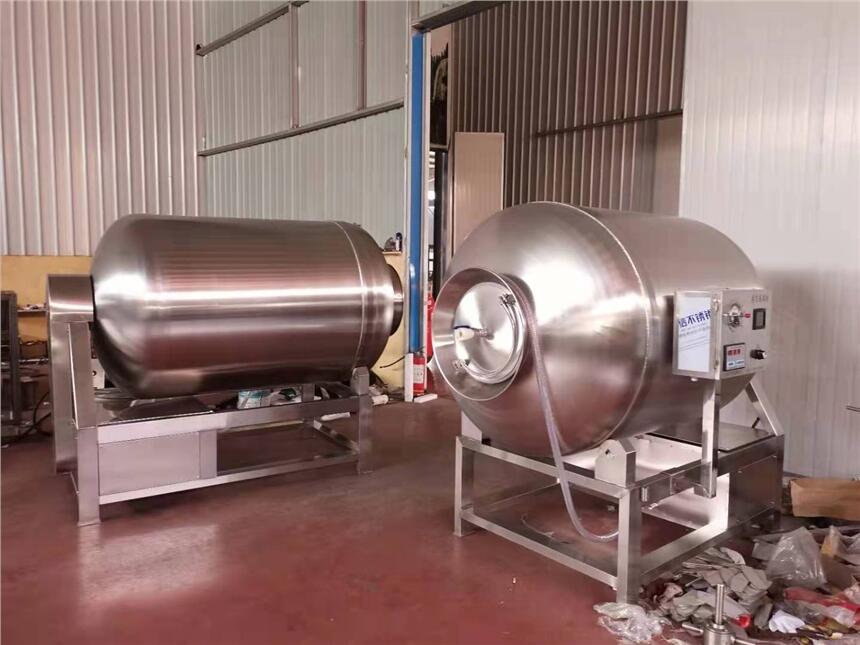 凉菜熟食店加工设备,卤菜店加工机器,凉菜卤肉技术培训。牛肉加工宜选用摔打力强的真空滚揉机。牛肉真空滚揉机以滚齿结构幅度大,减速机齿轮以大齿轮为宜,这样速比大,转速快,摔打力强,更快更好的摔打入味。这种牛肉真空滚揉机比一般普通真空滚揉机效果好、吸收辅料、水分也多。