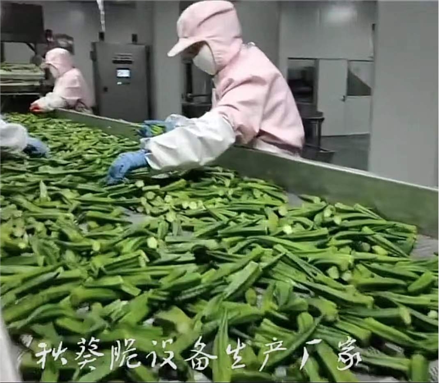 秋葵气泡清洗流水线(上)可根据厂家要求组装设备,达到客户满意,满足客户生产要求