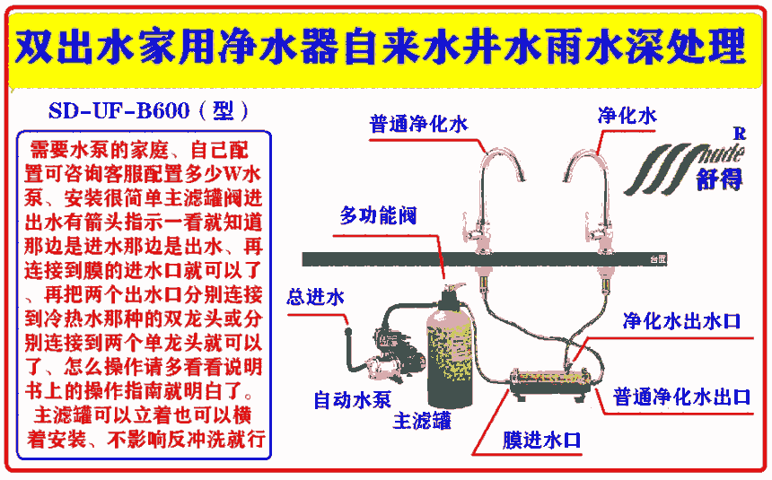 由于我的机电之家平台允许上传很多图片、所以图片浏览很丰富、如有贵客对舒得牌净水设备感兴趣的先生女士少爷小姐在我的机电之家看不到联系方式,请在淘B网或百度搜舒得牌净水设备就应该找到我们的联系方式、手机号可以直接加上微信、由于做广告加我们的微信的太多,加微信时请注明在我的机电之家上看到的就可以了。在此舒得恭候贵客咨询指导!谢谢!