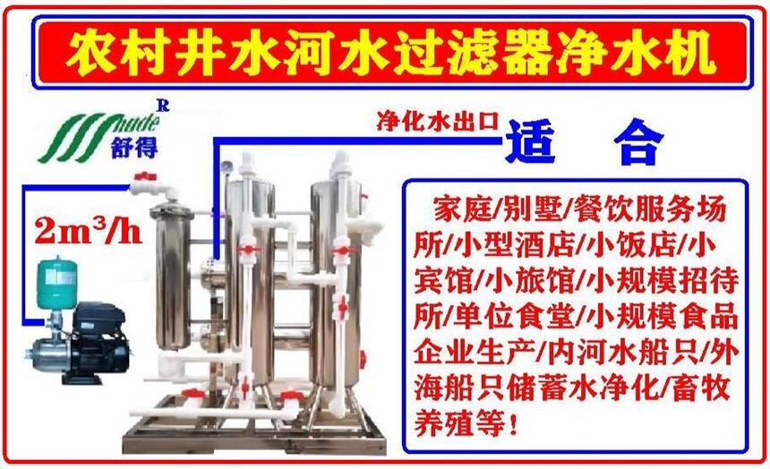 舒得欢迎国内外依靠井水河水雨水等水源赖以生存的人类群体使用舒得牌井水河水雨水等淡水Z专业净水设备一家庭安装一套或十家庭组团安装一套(大小规格齐全)舒得牌净水设备就可以天天喝上用上净化水无菌水 而不是城镇市区供应的普通市政自来水可比的 欢迎购买欢迎项目合作