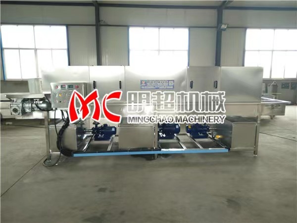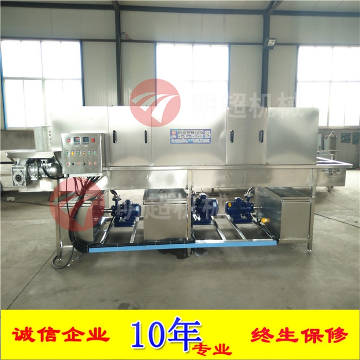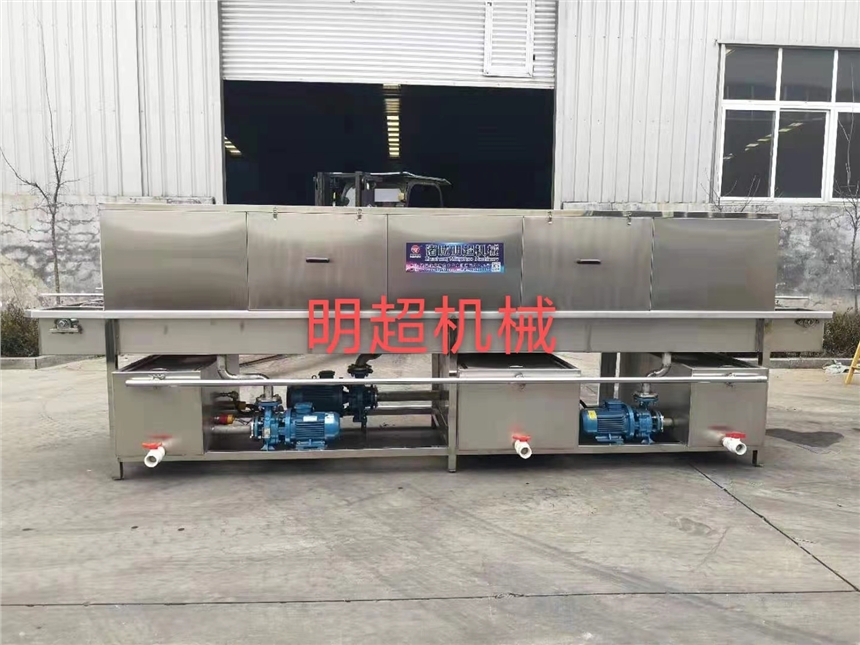 洗筐机也是我们家特色设备之一,周转箱全自动喷淋清洗机主线有一道喷淋清洗段(可加入碱来达到去油)、二道喷淋漂洗段,三道清水清洗,第四道风干沥水段组成,共四个工位,后面可以根据风干的程度配备机器风机,机器为全自动设备,仅需人工将待清洗的工件放入上料口,通过履带传动将工件送入设备主机内,逐个工位进行加热清洗→清水清洗→清水清洗→风干沥水。人工在下料台收取工件即完成整个初洗到洁净清洗的过程。全自动生产,清洗效率高,适应大批量生产。同时我们需要知道您是清洗油还是清洗,这样我们在配机器的时候也需要考虑设备长度,机器采用履带传送,自动调节,精准定位,运行安全可靠,采用无缝钢管焊接,这是我们家特色做工,这样的使用寿命期长,机器特点具有自动加热装置,数显温控器控温,自动恒温。配有循环过滤装置,使用水循环过滤,保证清洗槽内的清洁度。