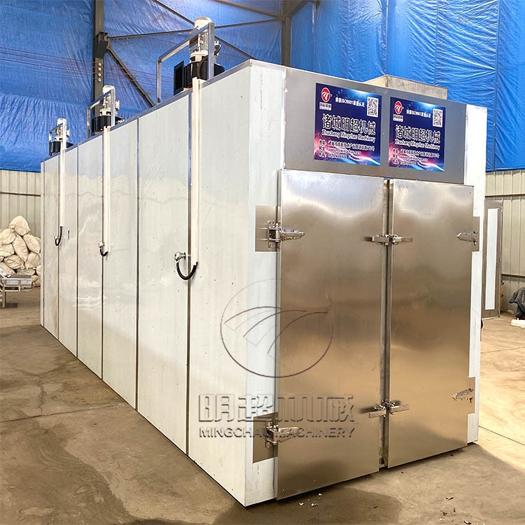 电机功率大,排湿风机功率大,保证水果干在里面烘干不彻底,烘干出来的产品色泽以及质量佳,我们家主要生产烘干房,厂内有多台烘干设备,可以来进行试机我们诸城明超机械可以定制多种尺寸以及能源类型的烘干房,使用烘干房烘葡萄干,要买多大的烘干房是根据烘干葡萄干的产量来定制的,把原料铺在烘盘上,就可以自动设置温度时间,之后就可以自主作业,我公司烘盘是透气型烘盘,保证气流在烘干房内将葡萄更好的烘干,同时机器外部保温材料为硅酸铝,厚度大约在80mm左右,为白色硅酸铝棉,能有效的保存烘干箱内的热量不被流失。具有自动恒温、自动烘干、自动排湿、自动报警等优点,明超机械让用户企业实现自动化管理,省却了人工难管理,工作效率低等,机器能源有电加热、蒸汽两种能源使用