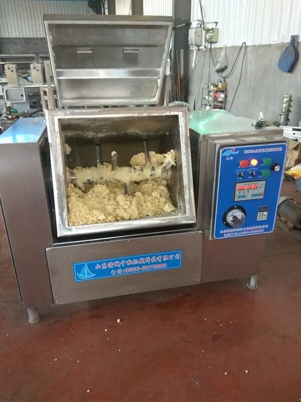 薄脆真空拌面机依靠的主要功能就是“真空”作用。把拌面机的面箱制作成一个可以控制的密闭空间,当机器面箱盖子压紧之后,通过真空泵往外抽走空气,使得面箱内呈现真空负压状态。在负压状态之下,面粉可以可以充分的膨胀,这样面粉可以与水分子可以更充分的结着在一起。相比普通拌面机吸水彻底,吸水量大一点点。这样的好处是保证制作出来的面皮不会有白茬,尤其是速冻水饺、冷鲜面条这些产品,面品柔韧性,筋度更好,面品网络结构更加致密。速冻之后不掉边,不掉渣。