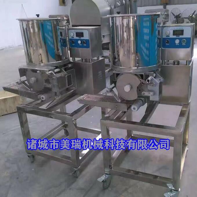 鸡肉饼成型机 全自动碎肉肉糜成型机器 美瑞汉堡肉饼成型机如果是鸡肉是需要进行清理钢丝的操作的,然后功能就需要多一些的,反之,如果是其他的肉类的话不需要这个功能的,然后如果是肉饼需要垫纸也是需要增加这个功能都是可以的,所说就是要跟客户交代清楚要具体来怎样使用以及什么要求的,机器都是商用的而加工使用的设备,然后可以让客户加工肉饼的效果达到更好的,型号可以选择。