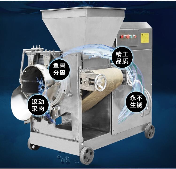 鱼肉采肉机、鱼肉疏松分离机装有采肉桶和鱼肉去刺机压榨肉用的橡胶带,利用滚动的采肉桶和传动的橡胶带的相互压榨运动将鱼挤入采肉桶内,而把鱼皮、鱼骨留在采肉桶外,鱼肉去皮机由刮刀把它送出机外. 鱼肉采肉机适用于海鱼、淡水鱼各种鱼类.大鱼分割成段,小鱼直接采肉.经采下的肉可加工成鱼肉丸、鱼肠、火腿等产品,鱼肉去刺机加工出的水产品推向市场,深受消费者的欢迎,同时,低成本的杂鱼鱼肉去刺机加工出的产品会给企业带来丰富的经济效益.鱼肉去骨机、鱼肉疏松分离机分离出来的鱼肉可用于生产鱼丸,鱼豆腐等。