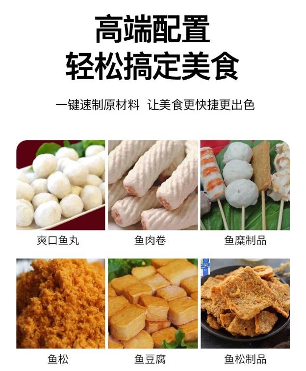 该设备可将鱼体中的鱼肉、鱼骨、鱼皮、鱼筋进行分离,达到提高原材料利用率,节约人工费用的目的。提高低价值鱼的经济值。开采的鱼肉可以直接用于生产各种鱼糜制品:鱼丸、鱼面、鱼胶、鱼饺子等产品。