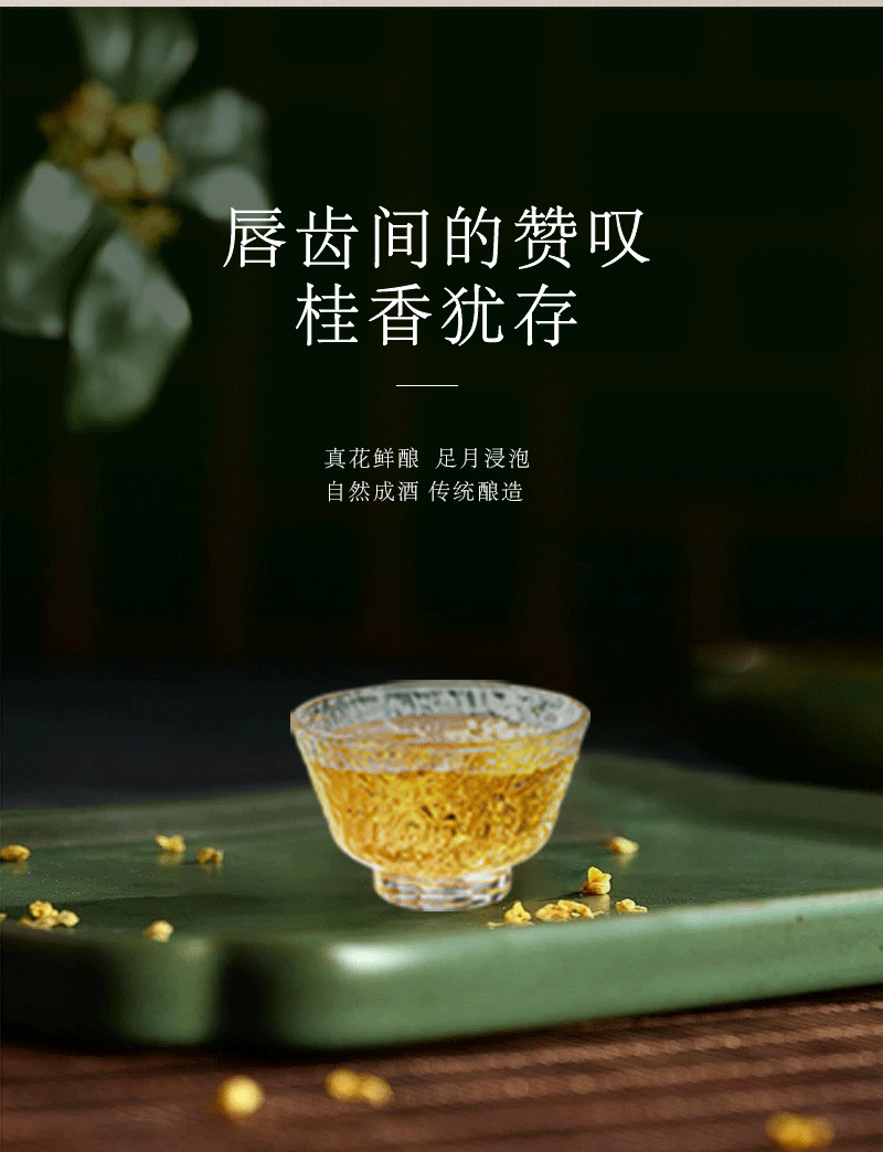 -主要原料:通常采用新鲜或干桂花,搭配糯米、山葡萄、米酒或白酒作为基酒。