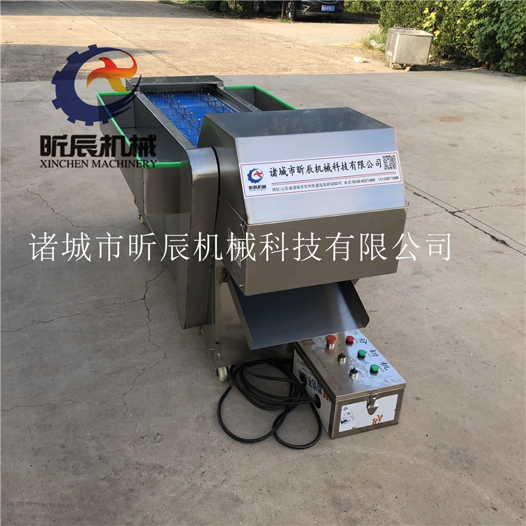 多功能分切机可分切多种产品,如:鸭胗,鸭脖,鸡脖,牛蒡,鸡爪,刀鱼,猪尾,玉米,萝卜,山药,莲藕,牛皮棒,药材类长条产品切段吗,鸭头,鸡架,凤爪,椰子分半切割,玉米,洋葱切头切尾,各种蔬菜切根等等。并可根据要求定制切割产品及尺寸。