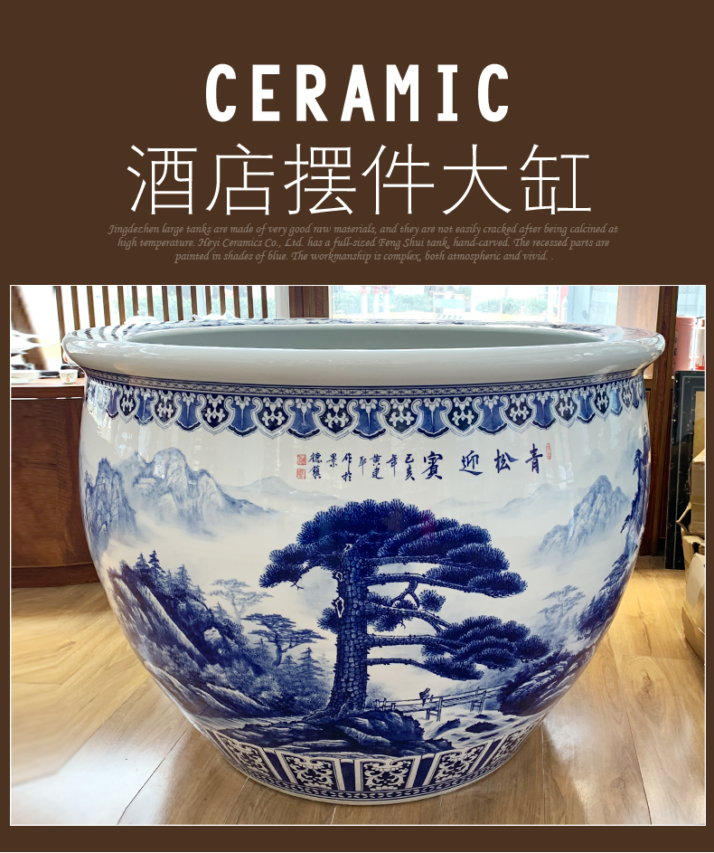 景德镇陶瓷大缸养鱼青花锦鲤睡莲荷花盆户外种树缸招财庭院仿古水缸