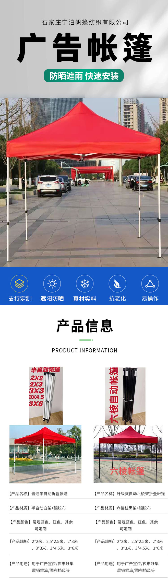用途 | 广告宣传、 夜市赶集、 展销乘凉、 围布挡风 | ||