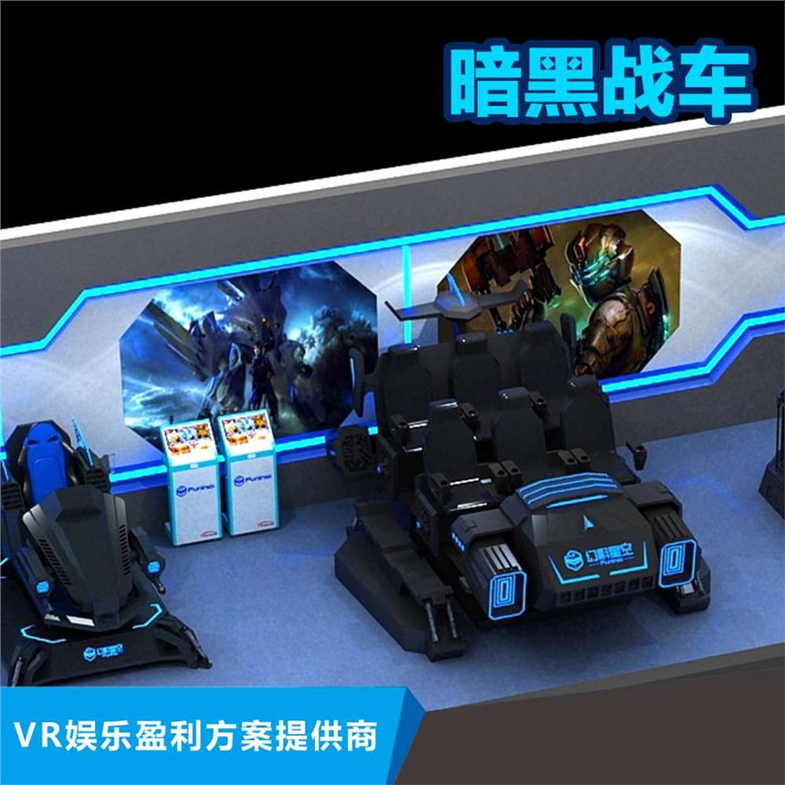 暗黑战车由一个360°全景眼镜、一个动感仓座椅、一个内容资源库组成,有单人座、双人座以及三人座。游戏中,戴上360°全景眼镜,就好像真正置身其中,玩过的人无一不被其刺激体验所震撼。