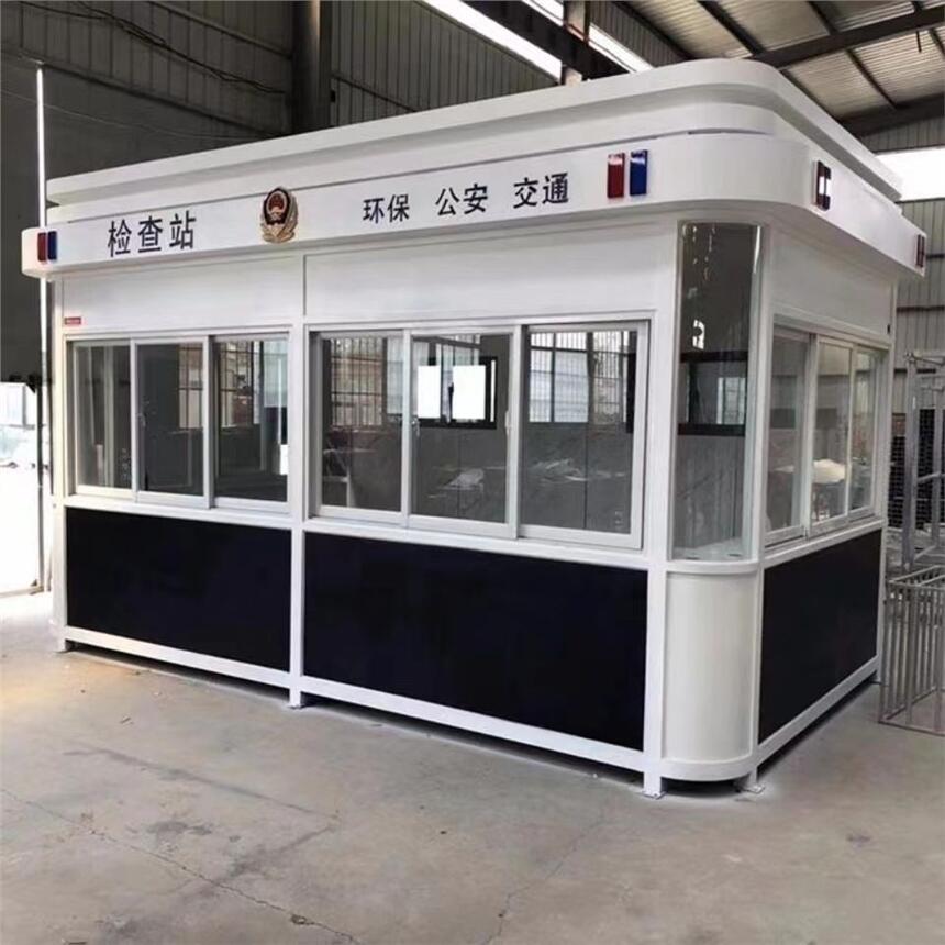 内部配有多用途插座,安装150mm排风扇,吸顶灯。顶部四角设置吊环。可方便吊装运输。底部加装万向轮、自带刹车装置。便于移动,全钢架底盘。坚固耐用。通过这些装置、你或许看得出来,保安岗亭的整体、就已经是一个完整的房子。完全适合在这里生活和工作。而且因为它底部的万向轮,能够根据使用要求。随时移动到需要它的位置。安全方便,经久耐用,所以如果有相关需要、请随时建议我们邓州同创岗亭生产厂家