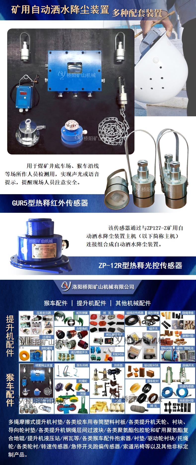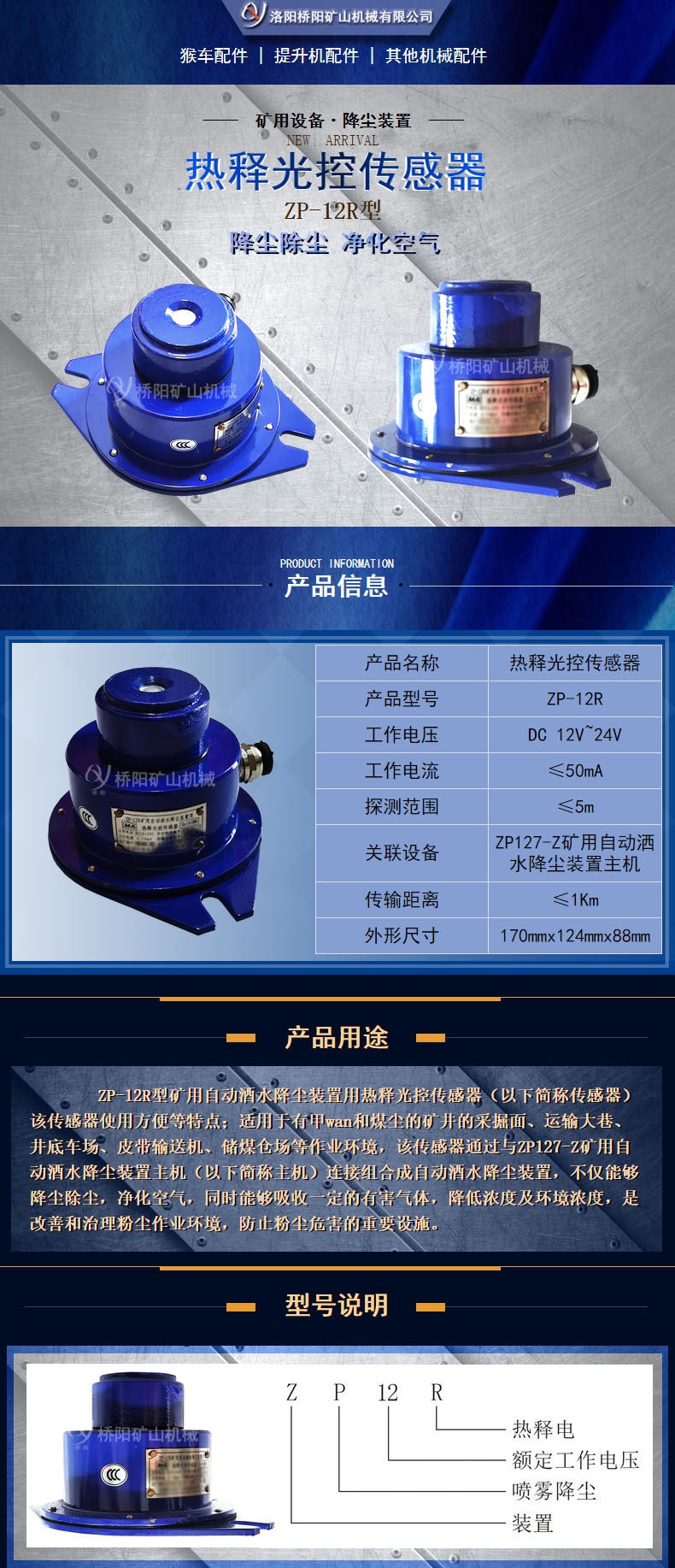 ZP-12R矿用自动酒水降尘装置用热释光控传感器应用于ZP127矿用自动洒水降尘装置中。