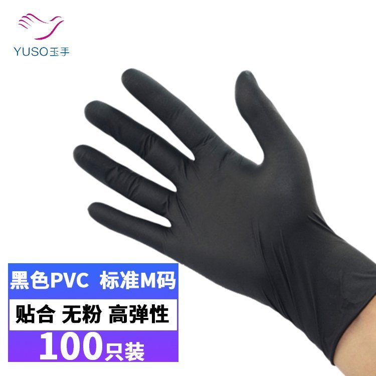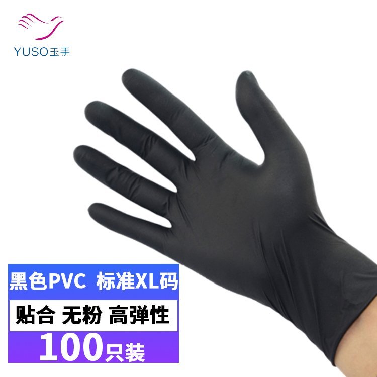 无粉PVC手套一次性贴合黑色手套山东玉手厂家直供