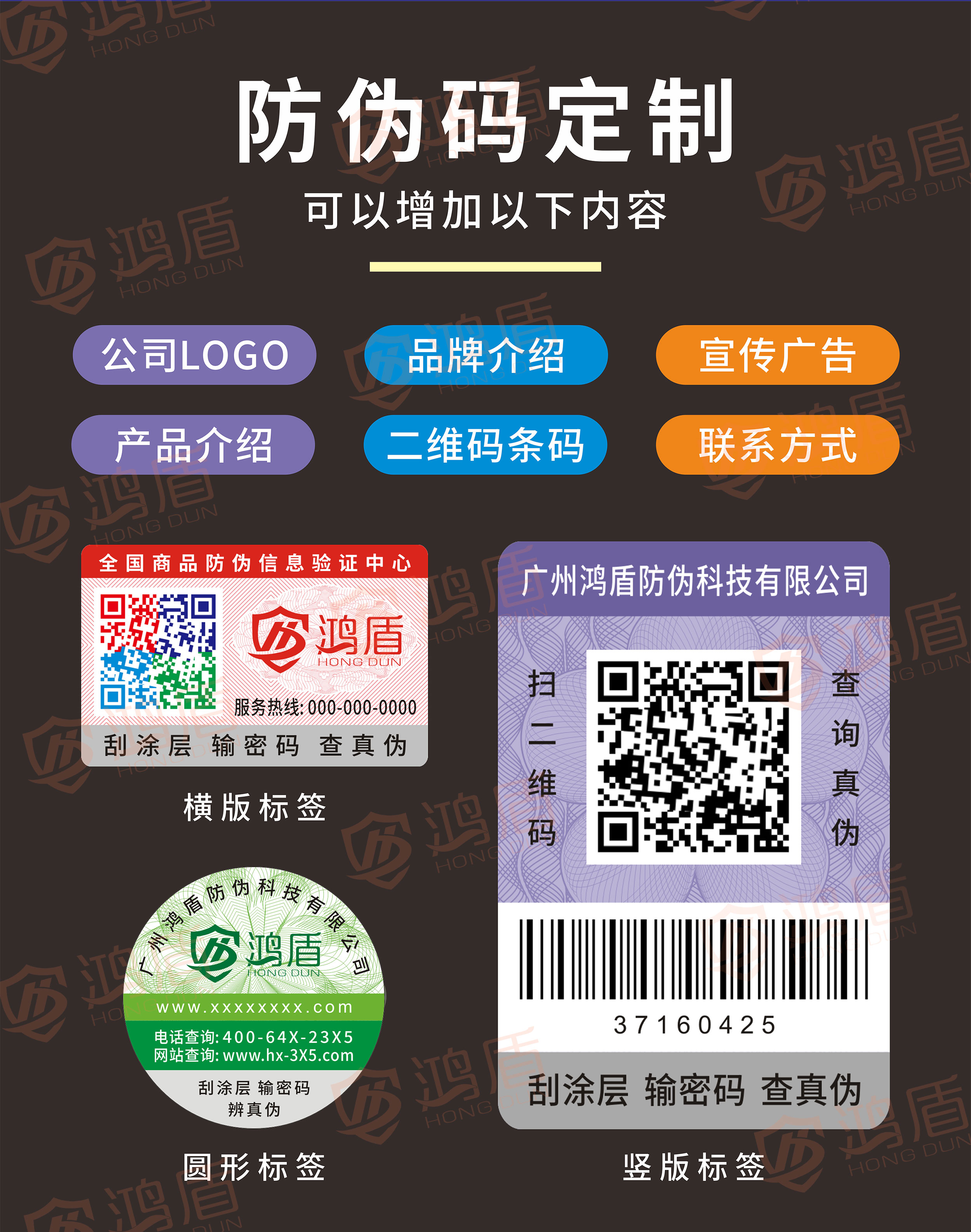防伪方式 | 400电话,数码防伪,电码防伪,二维码防伪,其他防伪方式 | ||