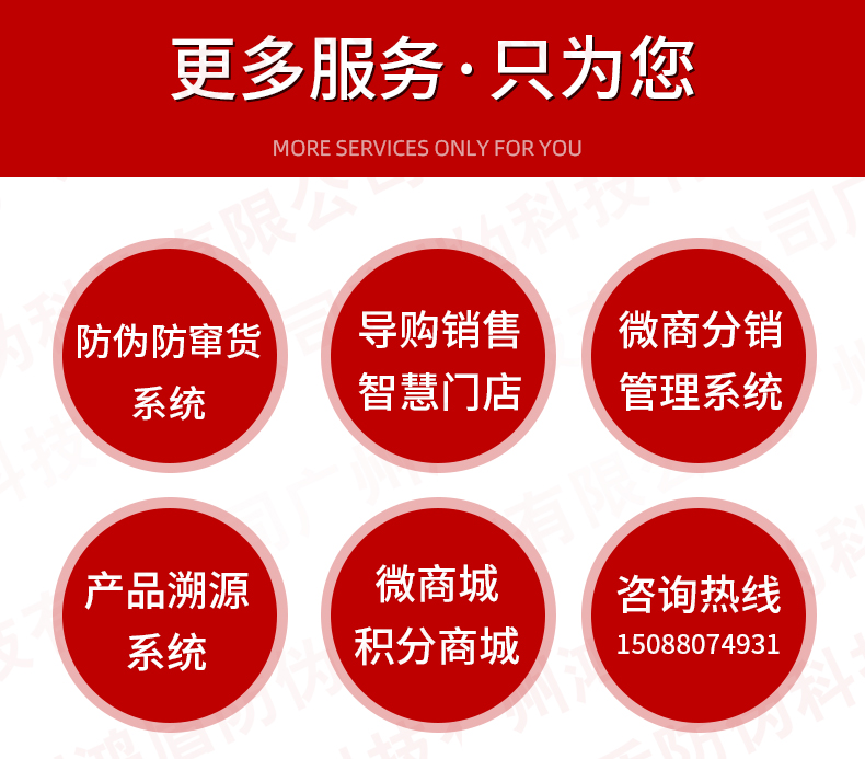 功能 | 防伪,溯源,红包营销,防窜货追溯,电子质保,其他定制功能 | ||