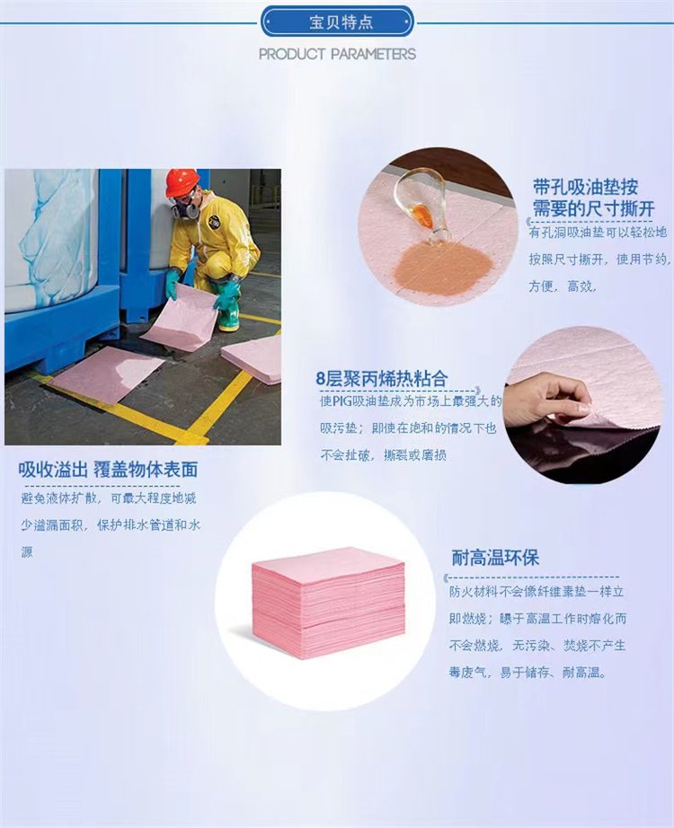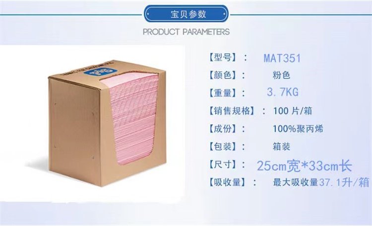 NEWPIG防化学吸污垫MAT351粉红色吸酸棉25*33CM吸液棉片吸油垫