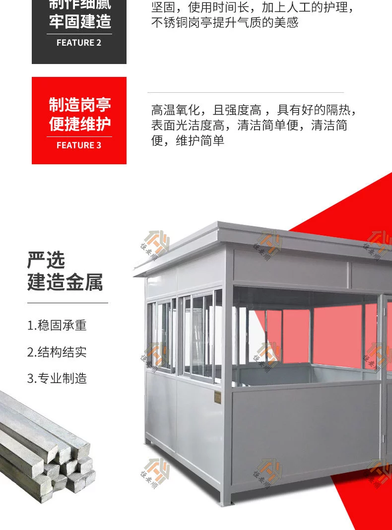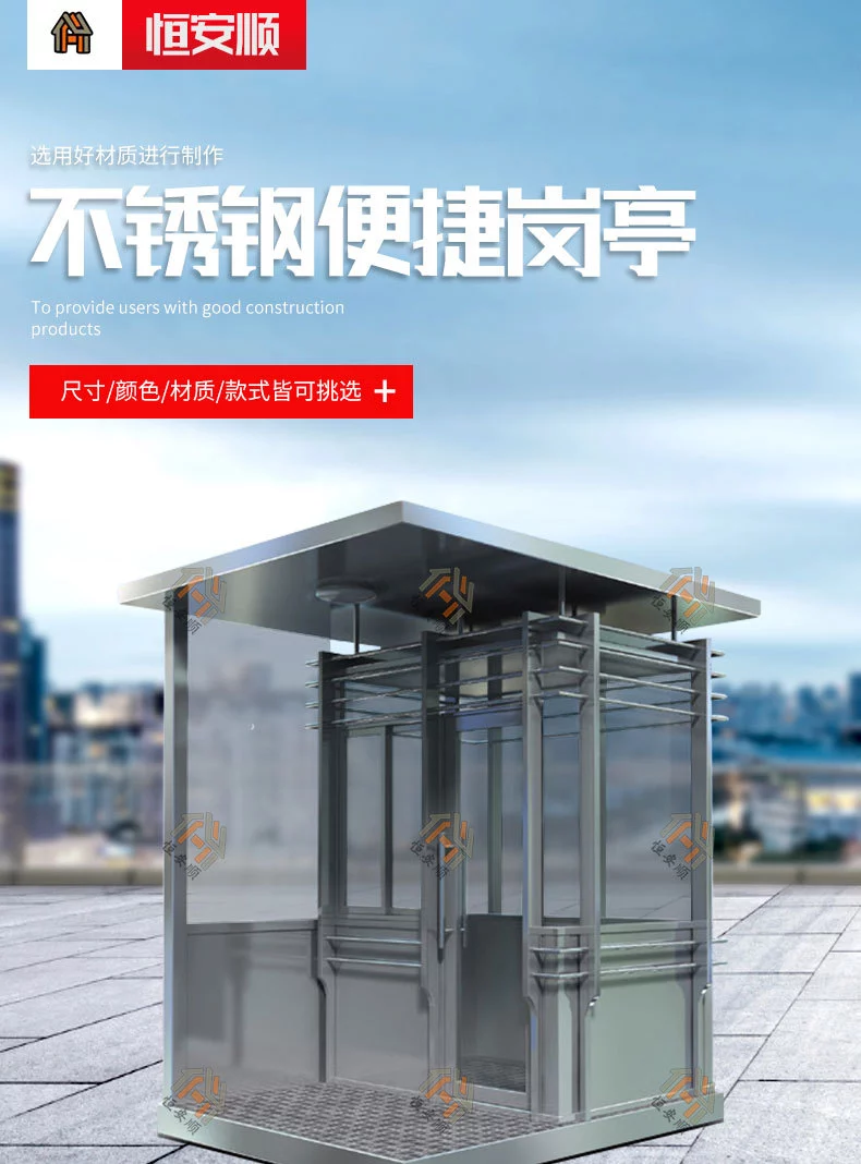 恒安顺不锈钢彩钢门卫亭户外值班室移动成品岗亭专业工艺便捷维护