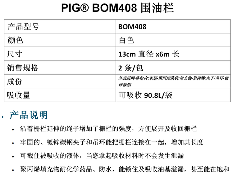 商品名称 | NewPig 纽匹格围油栏 | ||