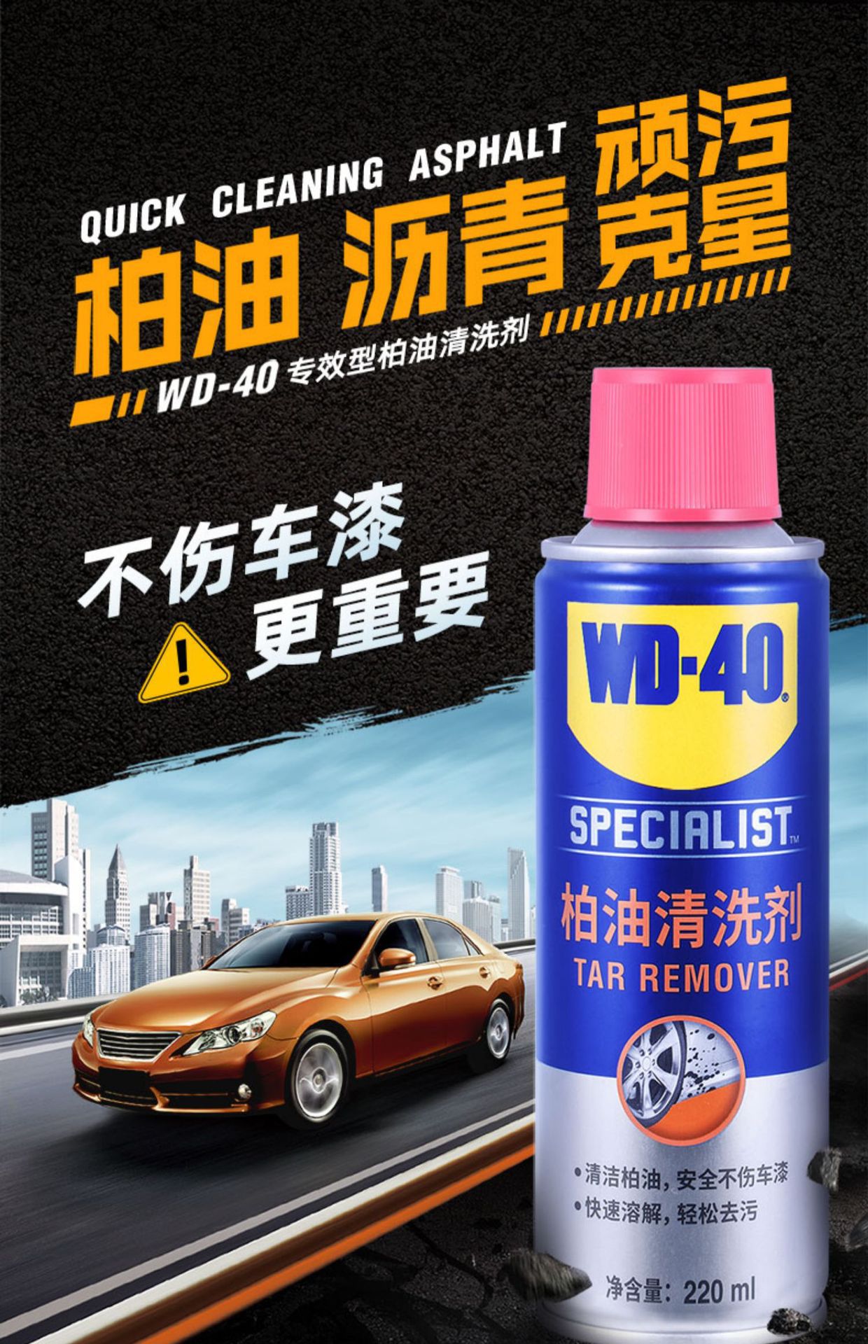 • 规格:WD-40柏油清洗剂220ml(1瓶价)